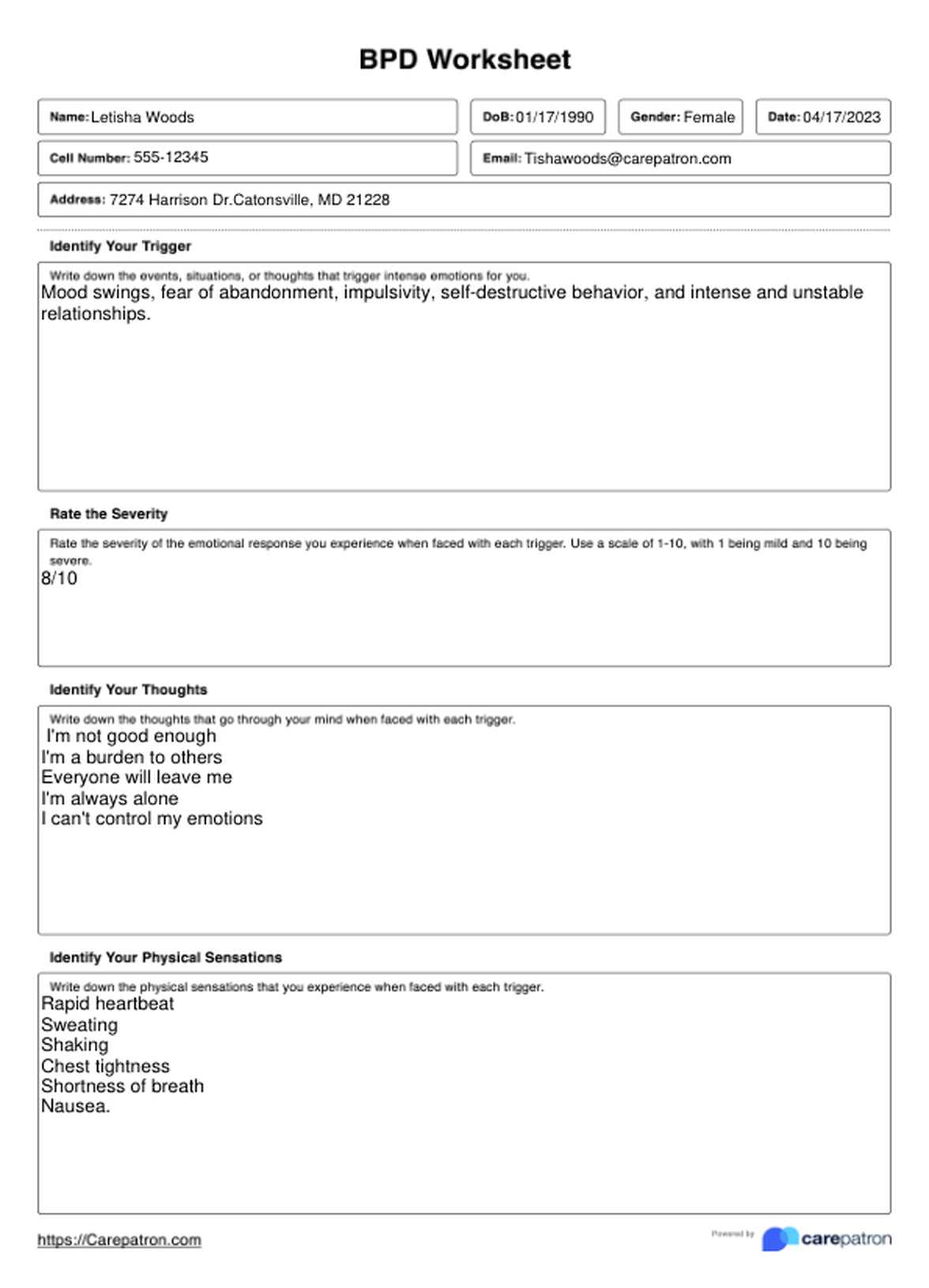 Bpd Worksheets