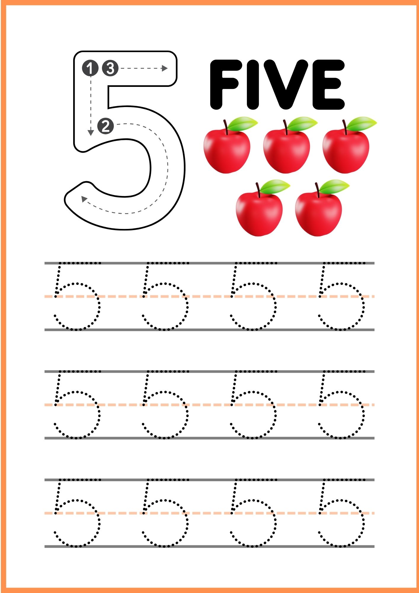 Trace Number 5 Worksheet for FREE for Kids Worksheets Library